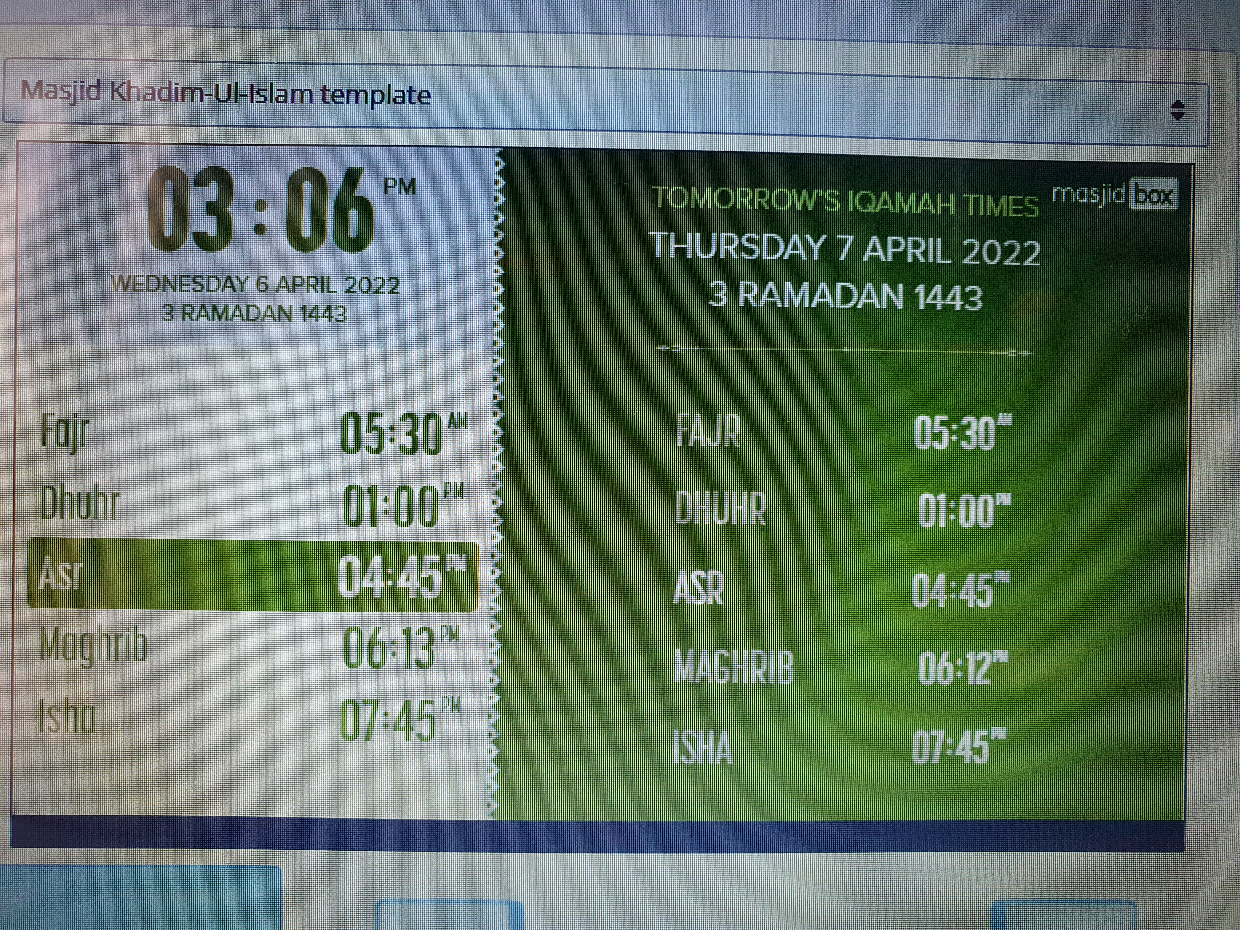 For tomorrow's prayertime table, the date is still showing today's date instead of tomorrow's date