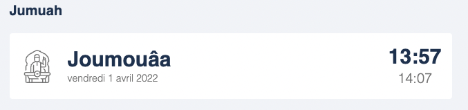Jumuah Component shows the wrong iqamah time (dhuhr iqamah = 10 minutes). Iqamah is set to 30 min for jumuah